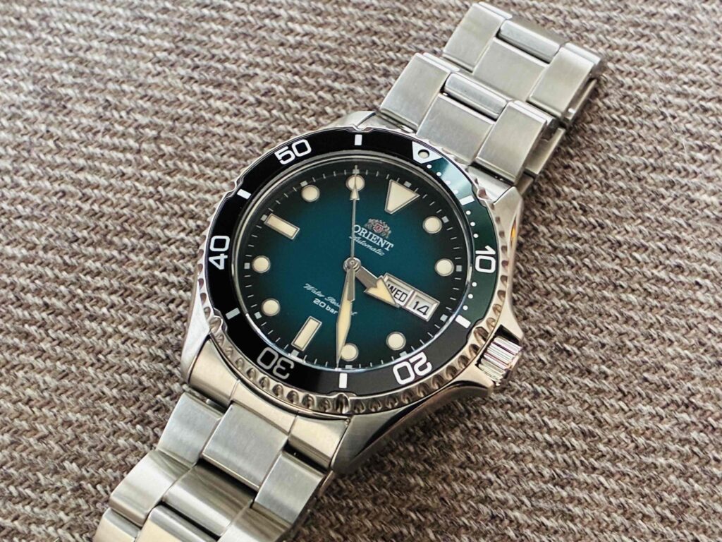 機械式なので、毎日つけていないとすぐにとまってしまうオリエントカマスⅡ。私みたいな細腕には少々重くてゴツめ。それでもデザインのカッコよさに惚れて買ってしまいました。