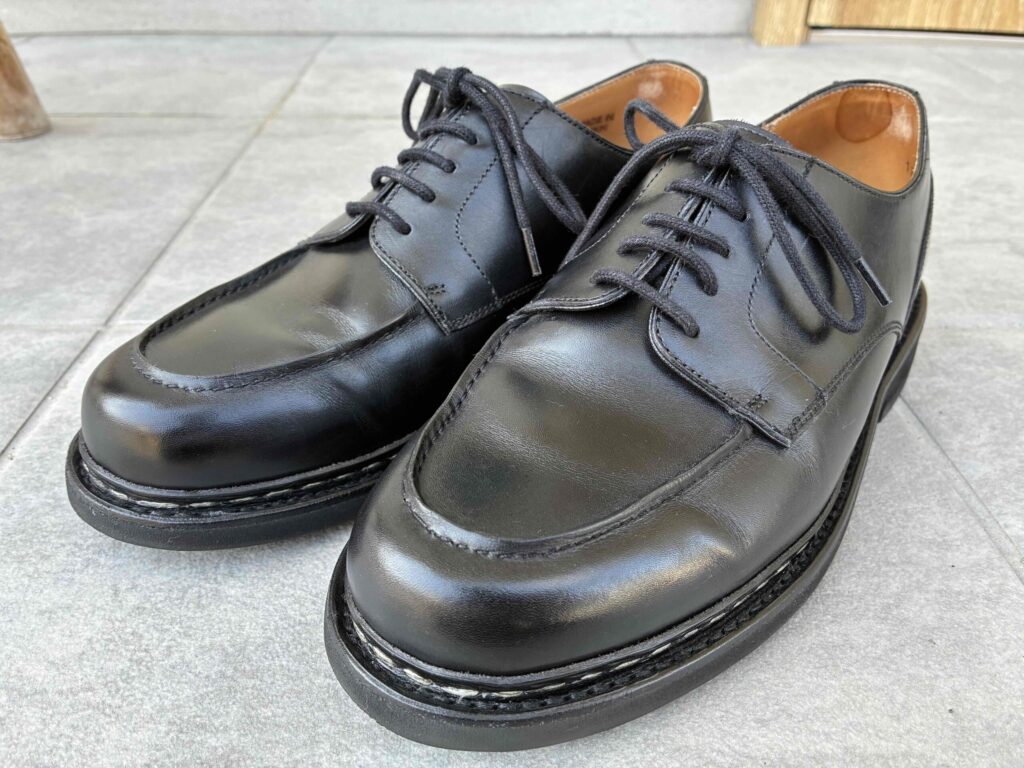 パラブーツの「シャンボード」や、JM.ウェストンの「ゴルフ」も候補には挙がりましたが、近年価格が高騰しており手が出ず……。